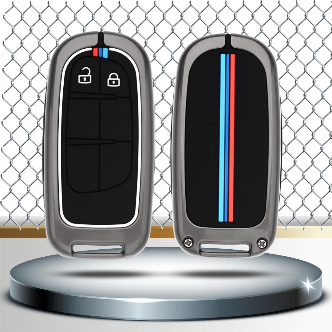 Keycept Metal Alloy Car Key Cover for Jeep Meridian, Compass, Trailhawk, 2 Button Smart Key with keychain (Type M2)