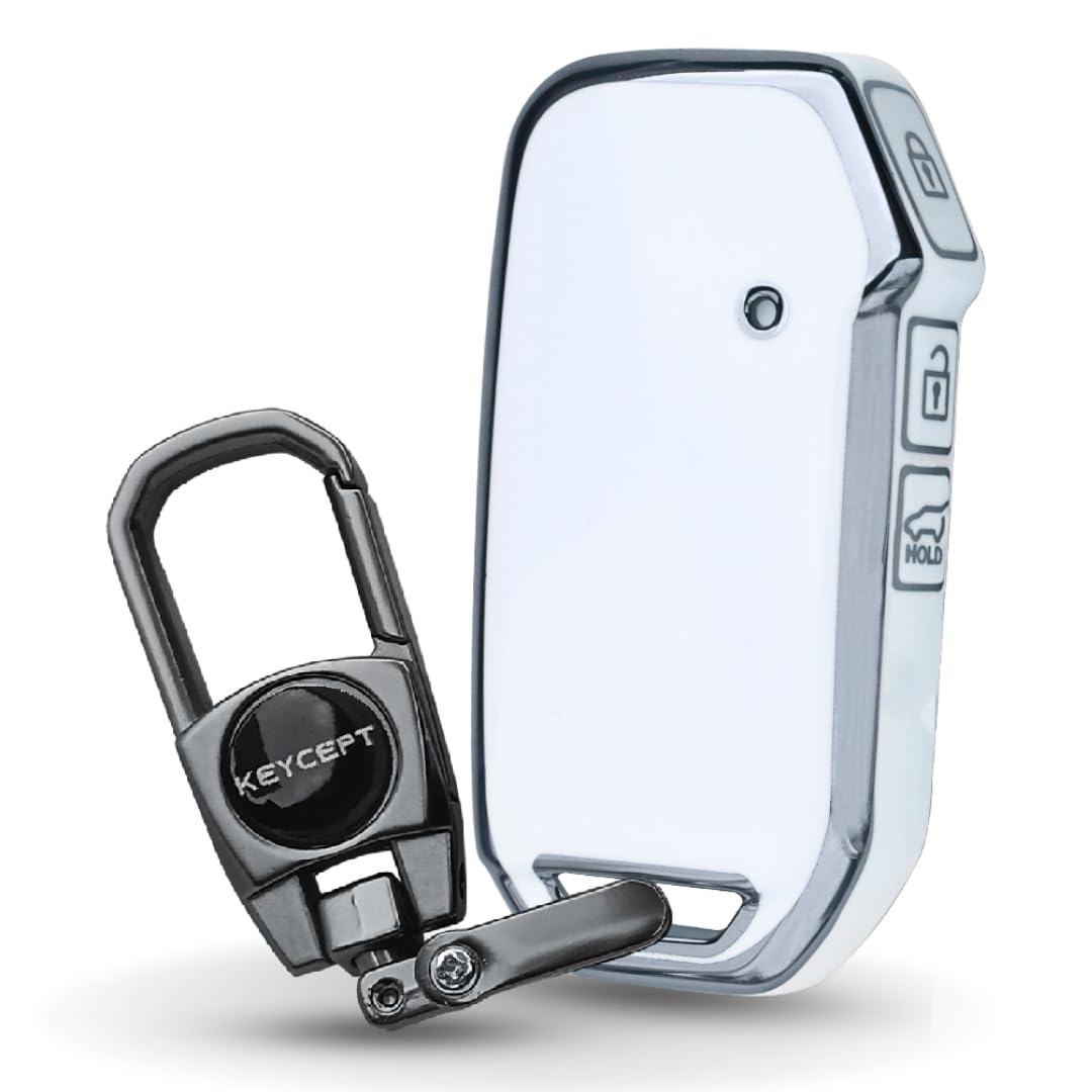 Keycept Silver Line TPU Car Key Cover for Kia Seltos HTE, Sonet HTE, Carens Premium, Prestige 3 Button Smart Key with keychain (Type K2)
