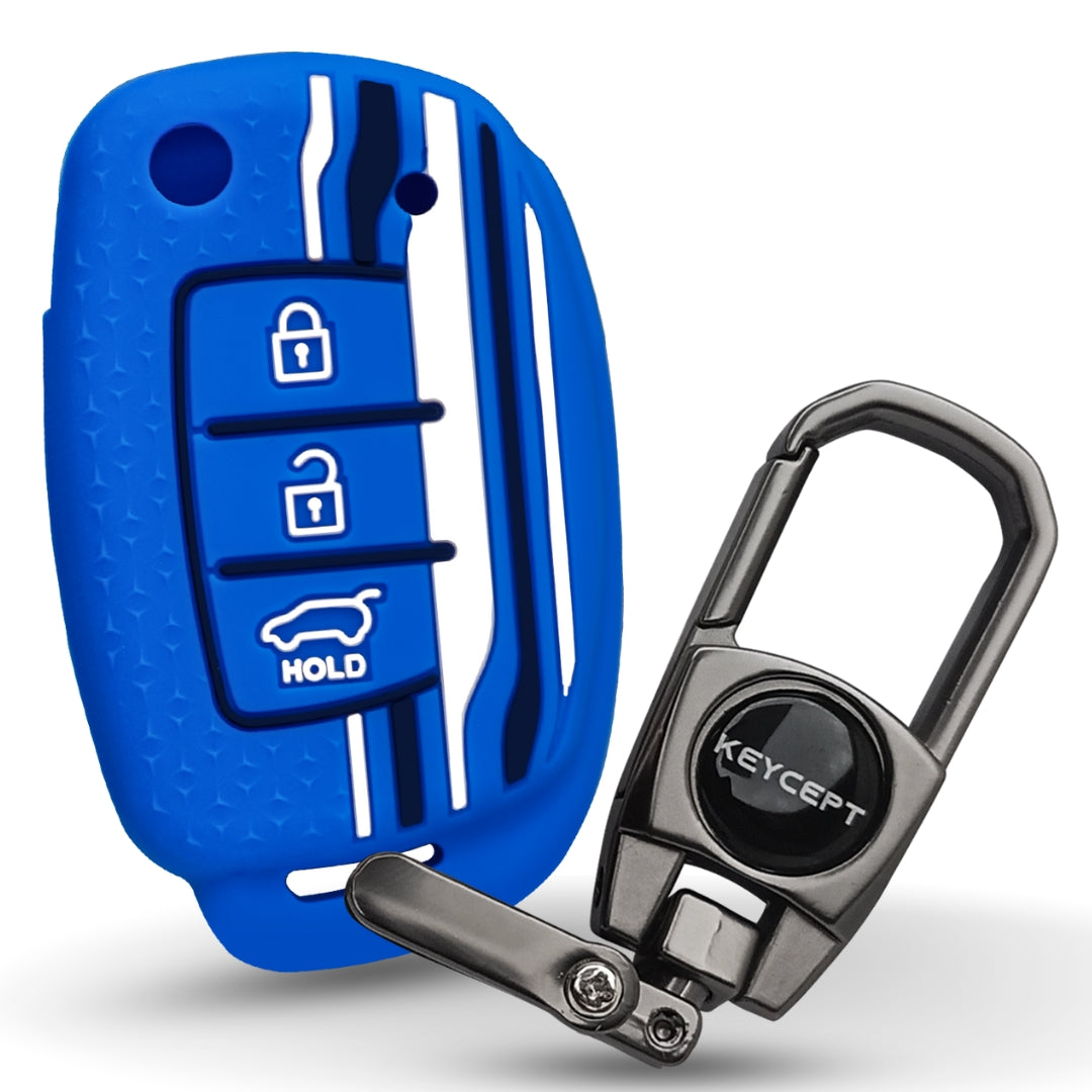 Keycept Tristar Silicone Car Key Cover for Hyundai Creta, Venue, Aura, i20, Grand i10 Nios, Xcent 3 Button Flip Key with Keychain (Type K2)