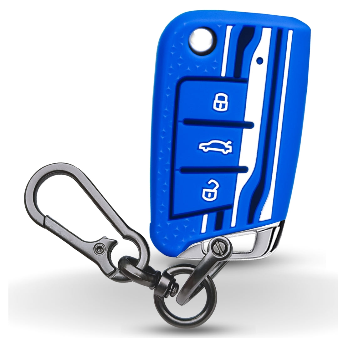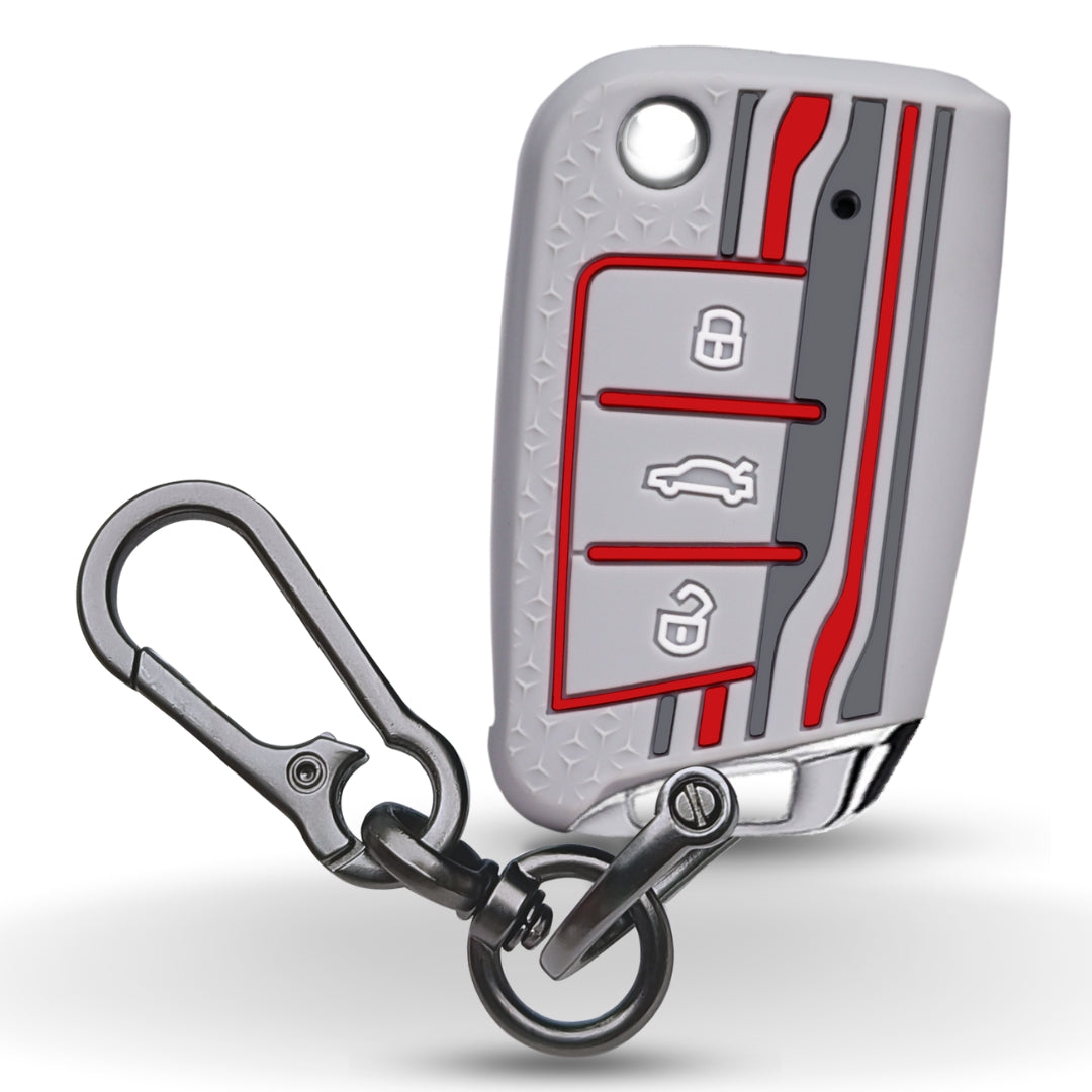 Keycept Tristar Silicone Car Key Cover for Skoda Kushaq, Octavia, Kodiaq, Superb, Slavia, Passat, Virtus, T Roc 3 Button Flip Key with Keychain (Type K1)