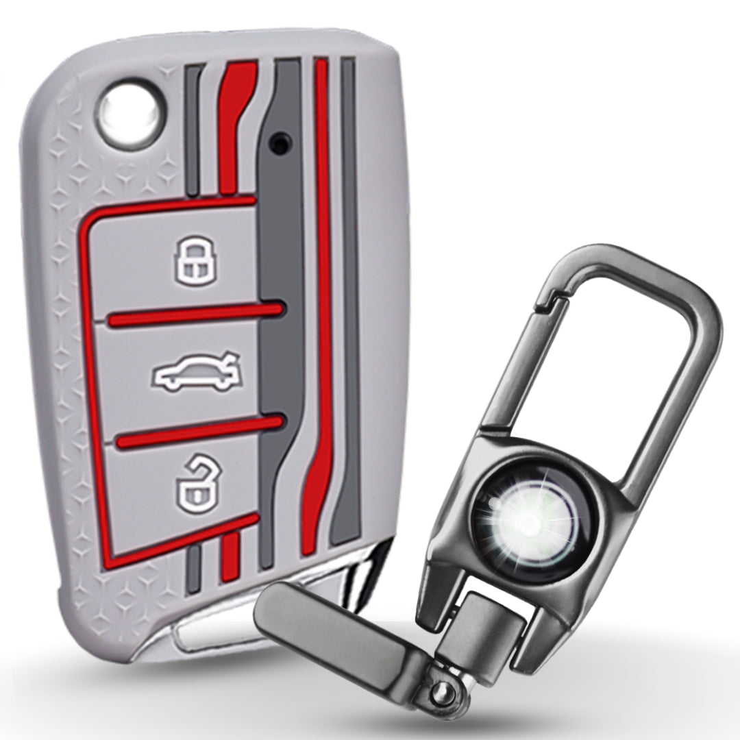 Keycept Tristar Silicone Car Key Cover for Skoda Kushaq, Octavia, Kodiaq, Superb, Slavia, Passat, Virtus, T Roc 3 Button Flip Key with Keychain (Type K8)