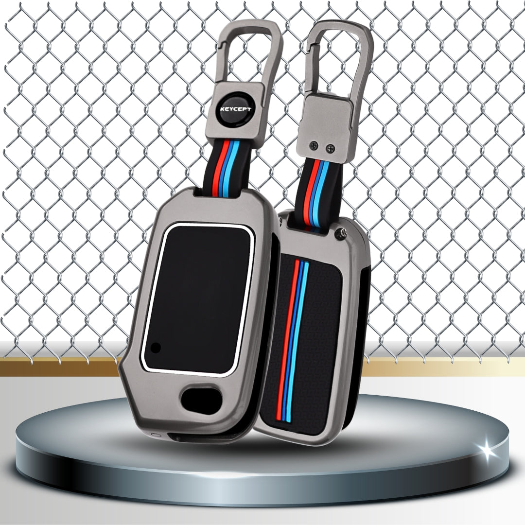 Keycept Metal Alloy Car Key Cover for Kia Seltos, Sonet, Carens 3 Button Flip Key Cover with Keychain (Type M1)