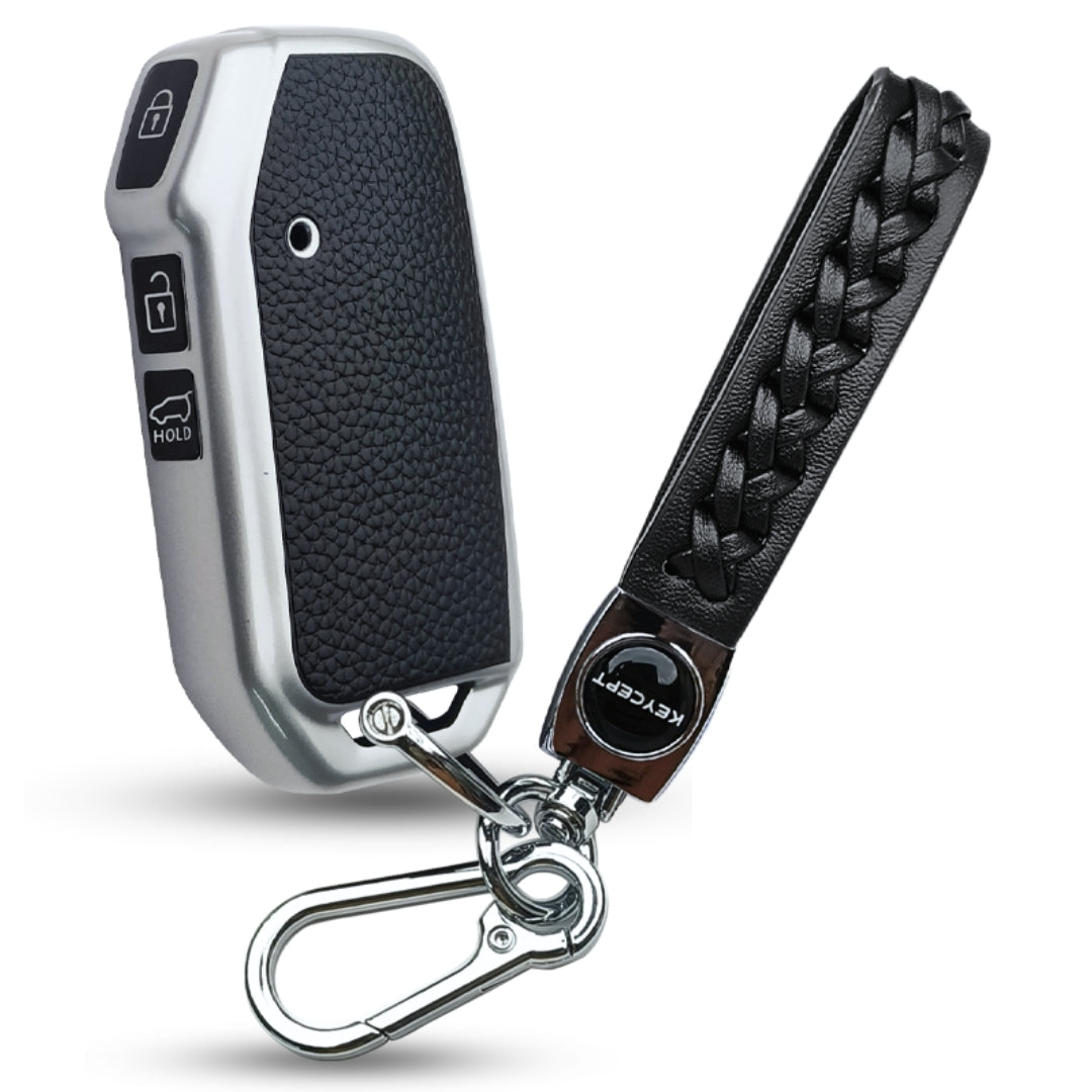 Kia TPU (Artificial) Leather Key Cover with Keychain. (Type 5)