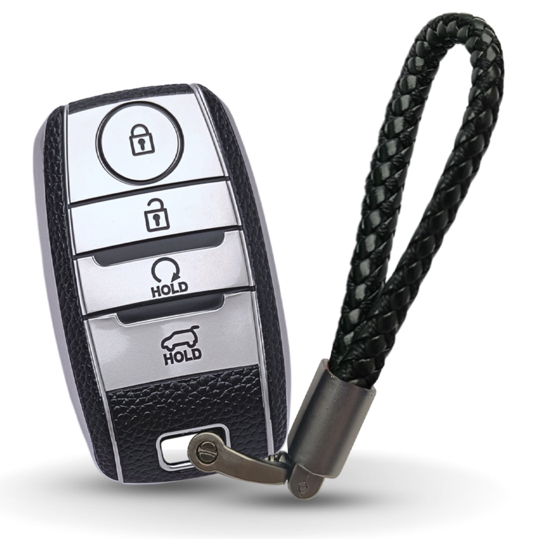 Kia TPU (Artificial) Leather Key Cover with Keychain. (Type 6)