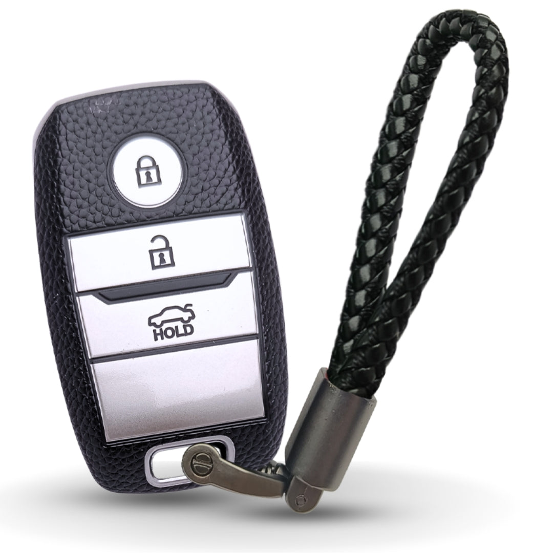 Kia TPU (Artifiicial) Leather Key Cover with Keychain. (Type 6)