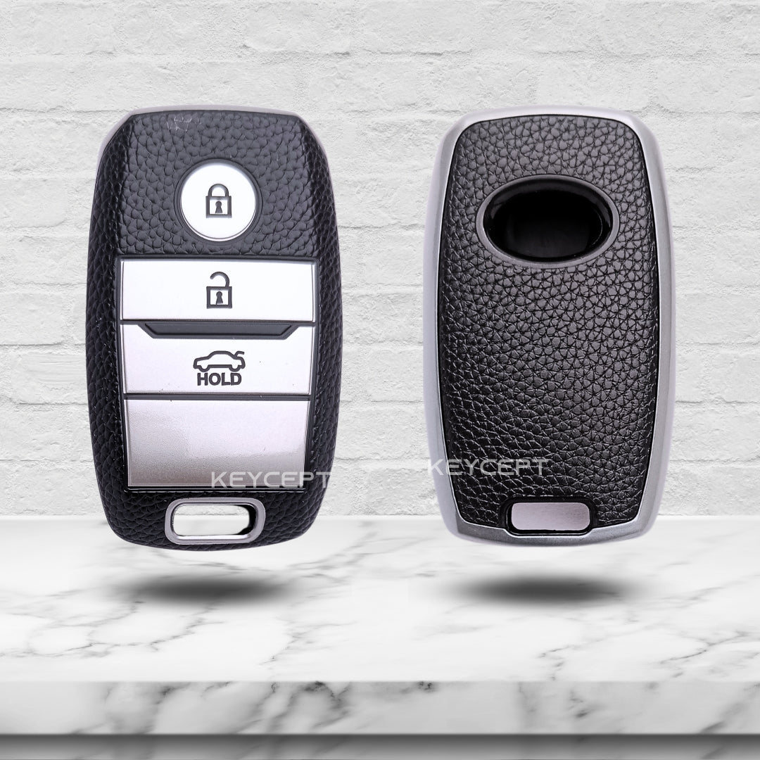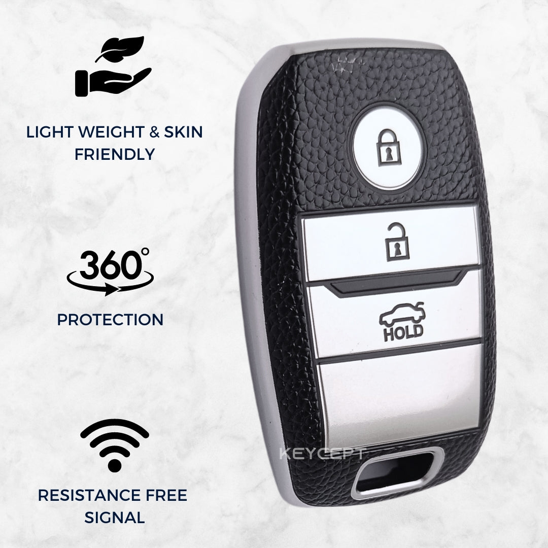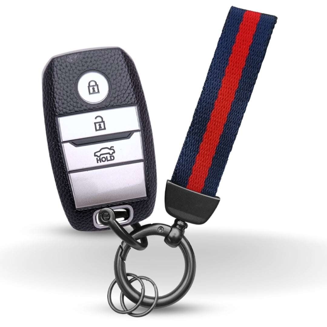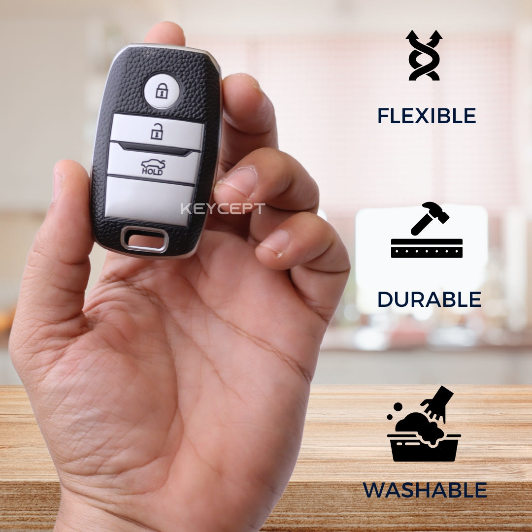 Kia TPU (Artificial) Leather Key Cover with Keychain. (Type 7)