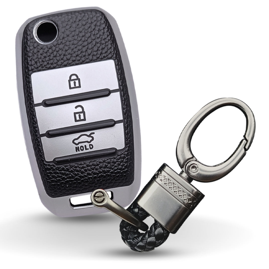 Kia TPU (Artificial) Leather Key Cover with Keychain. (Type 4)