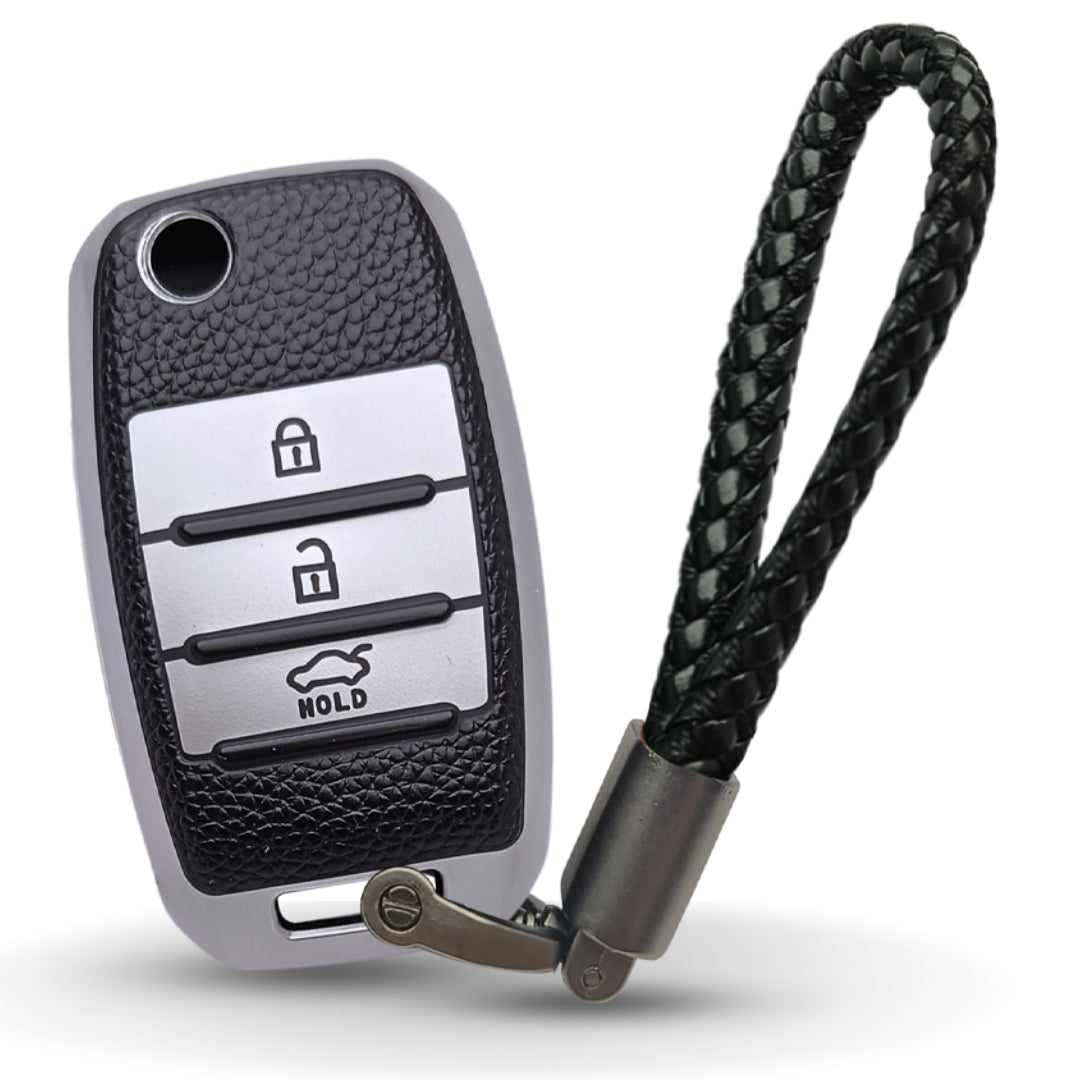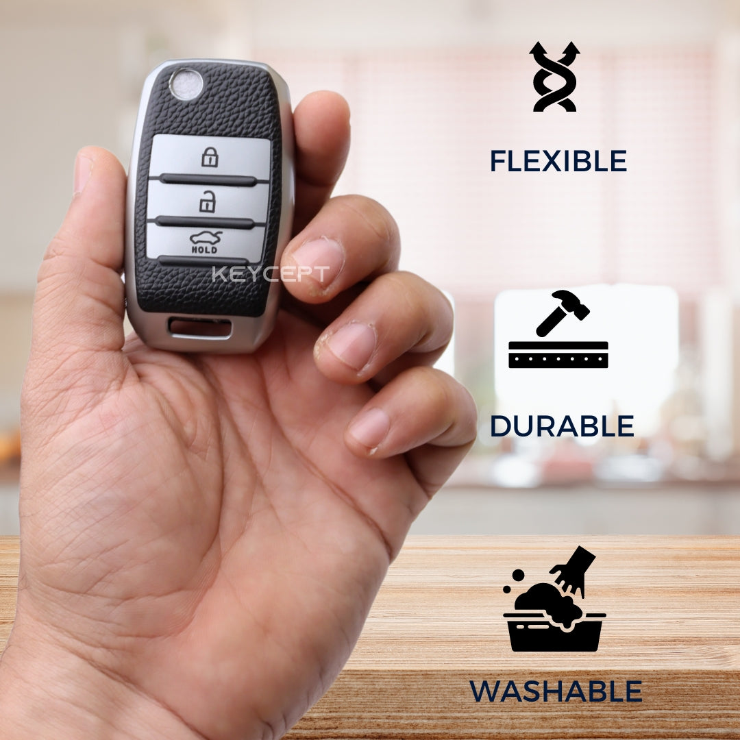 Kia TPU (Artificial) Leather Key Cover with Keychain. (Type 6)