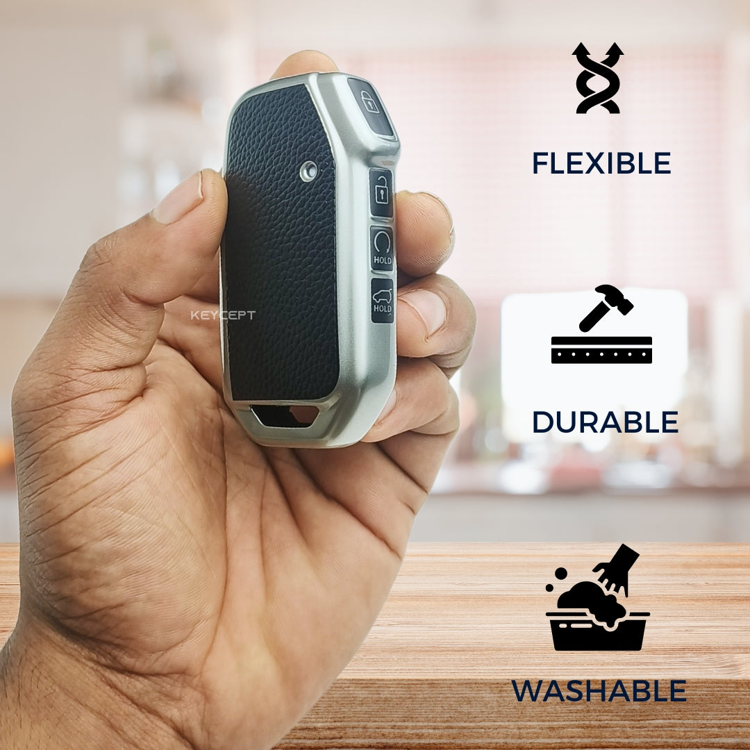 Kia TPU (Artificial) Leather Key Cover with Keychain. (Type 4)