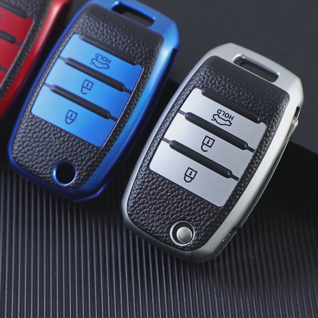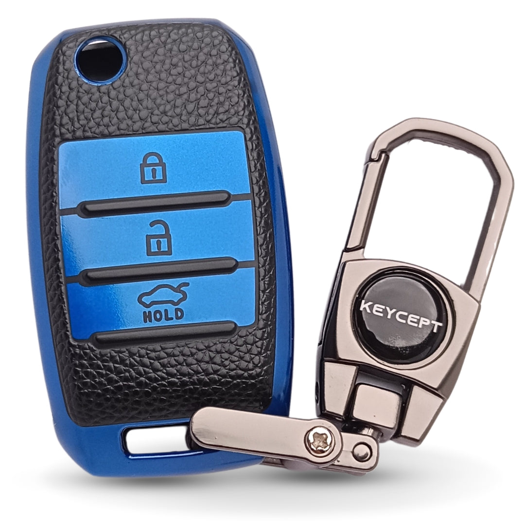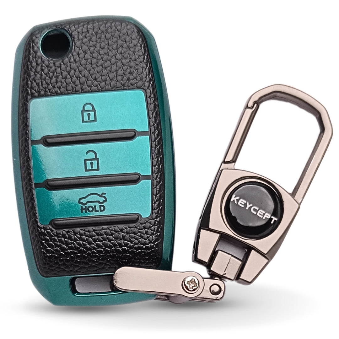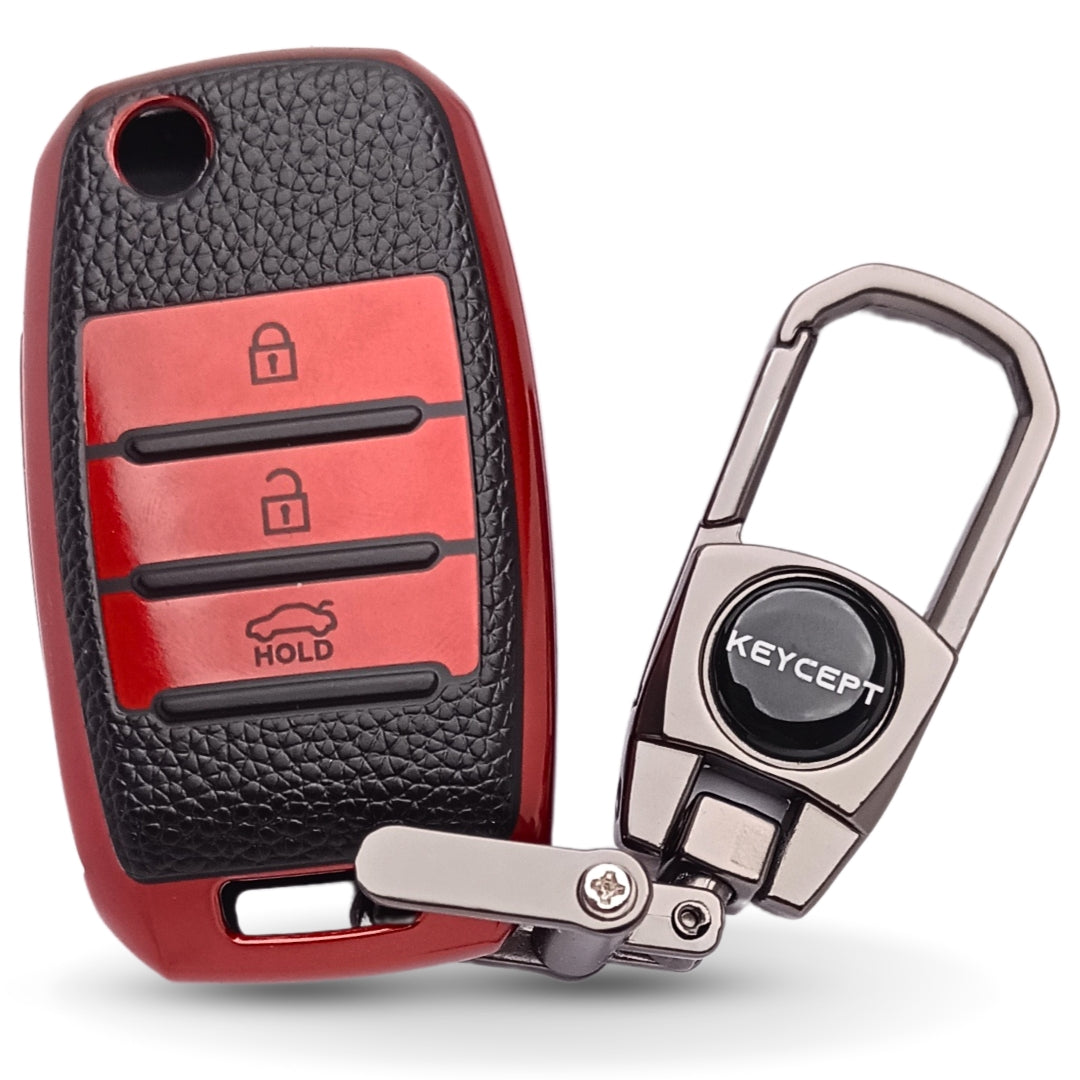 Kia TPU Leather Key Cover with Keychain. (Type 2)