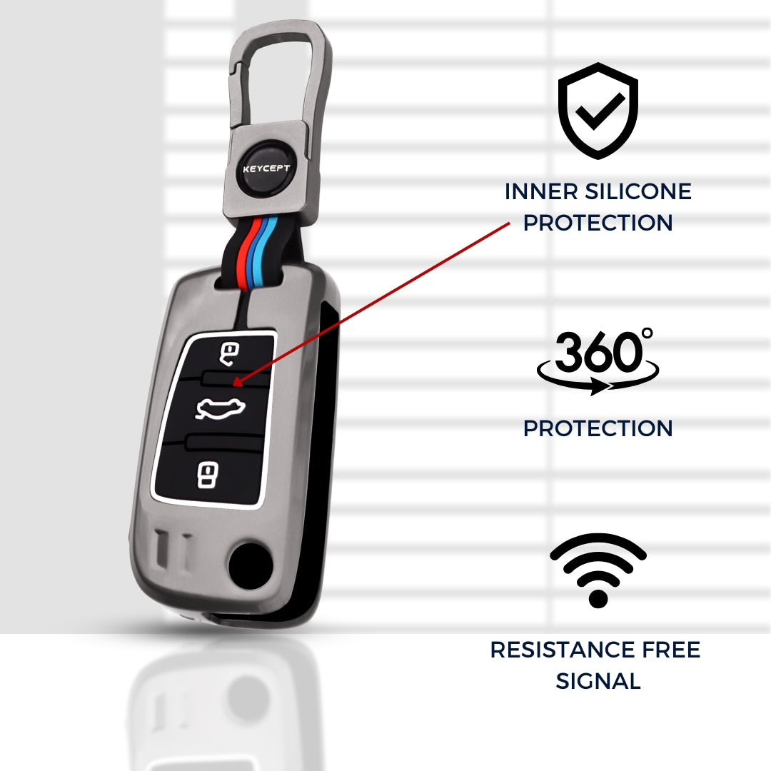 Audi Metal Alloy Key Cover with Keychain (Type M1).