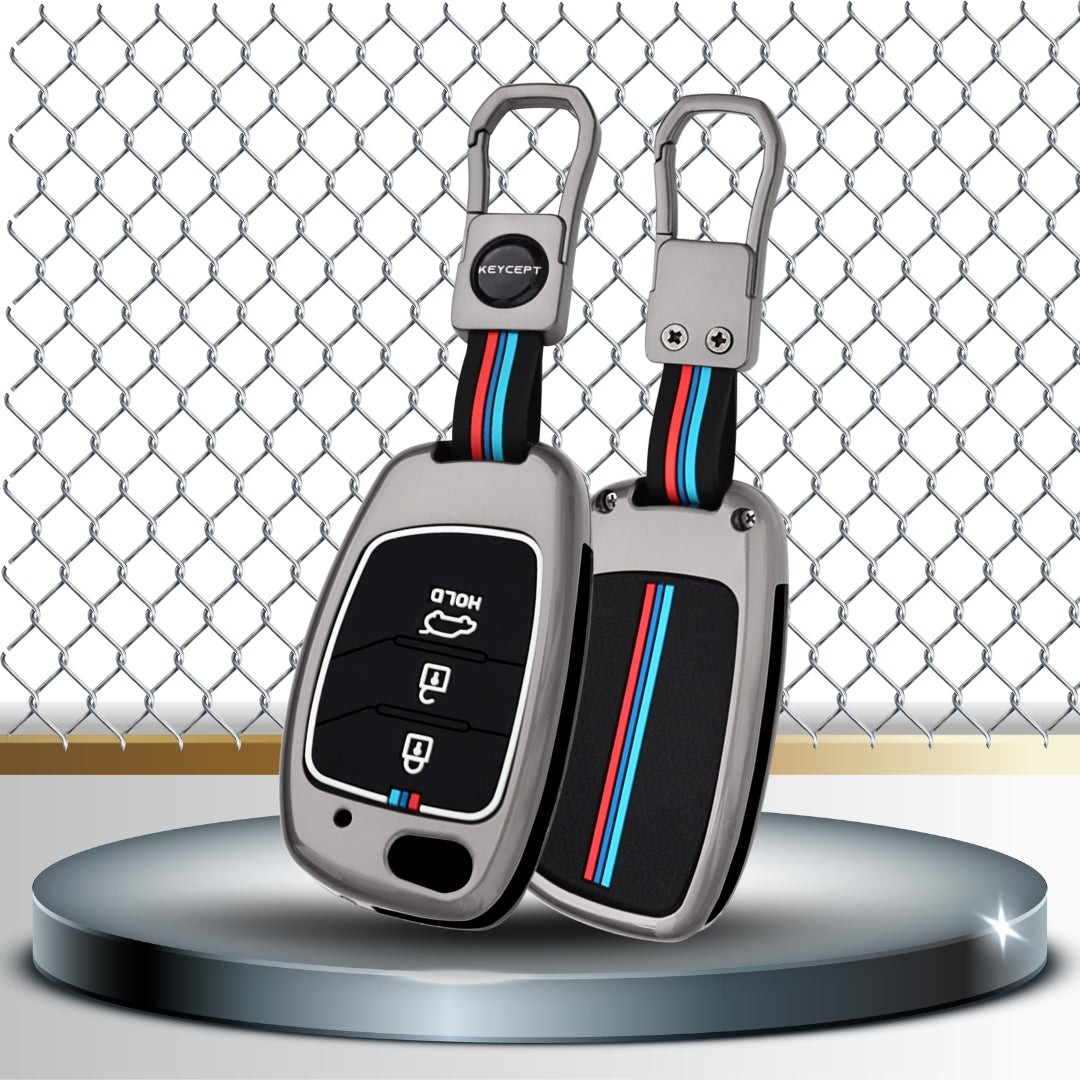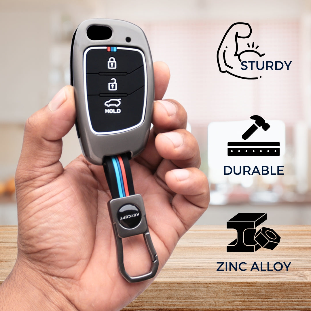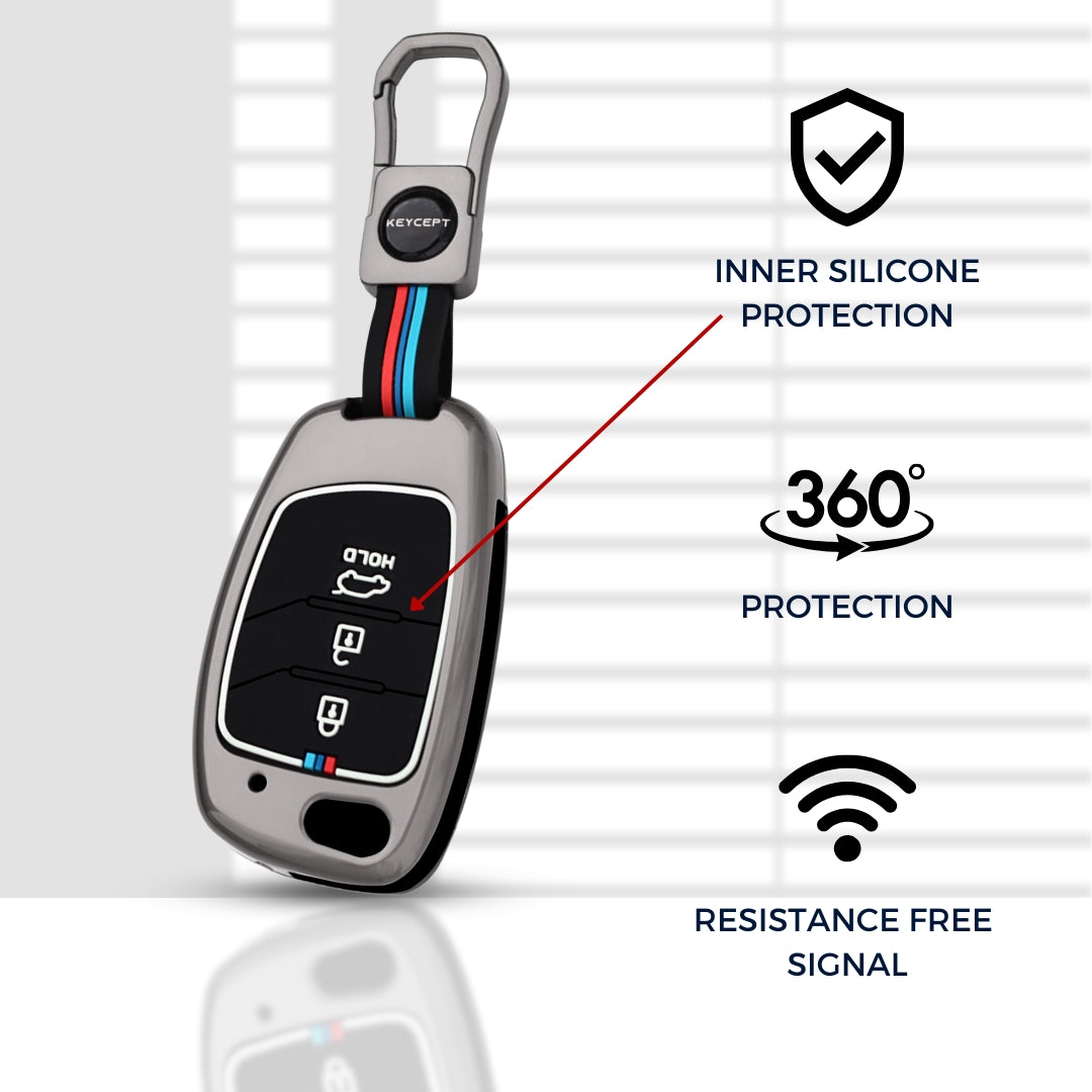 Keycept Metal Alloy Car Key Cover for Hyundai Creta, Venue, Aura, i20, Grand i10 Nios, Xcent Key Cover with Keychain (Type M1)