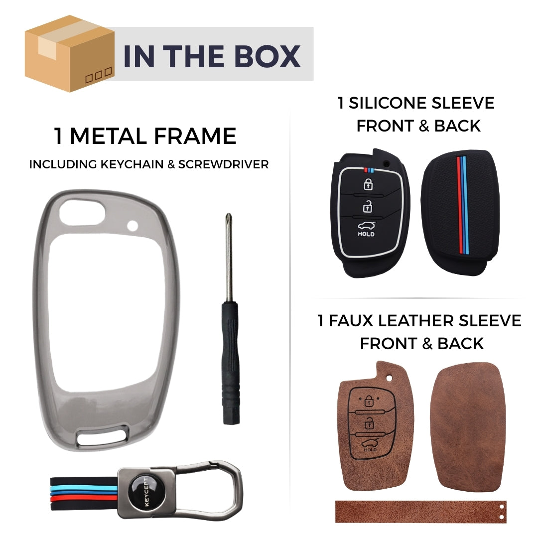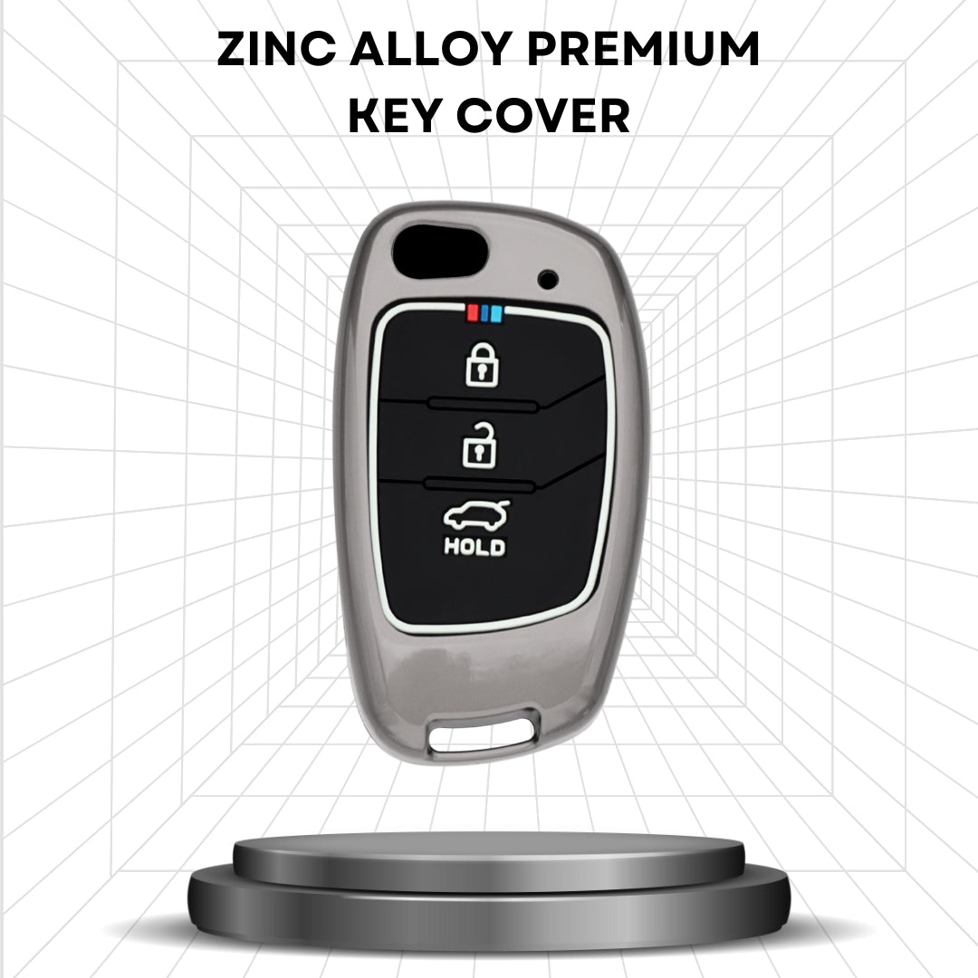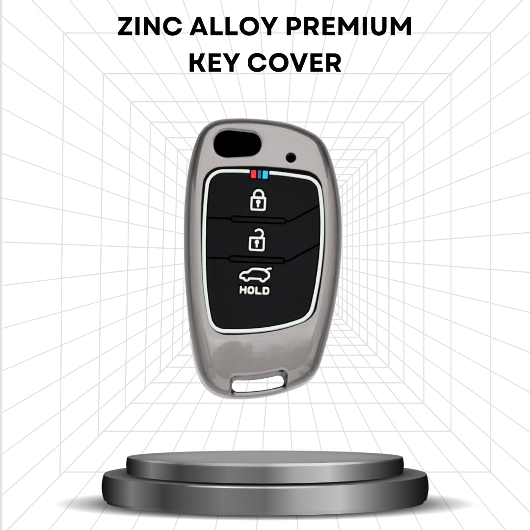 Keycept Metal Alloy Car Key Cover for Hyundai Creta, Venue, Aura, i20, Grand i10 Nios, Xcent Key Cover with Keychain (Type M1)