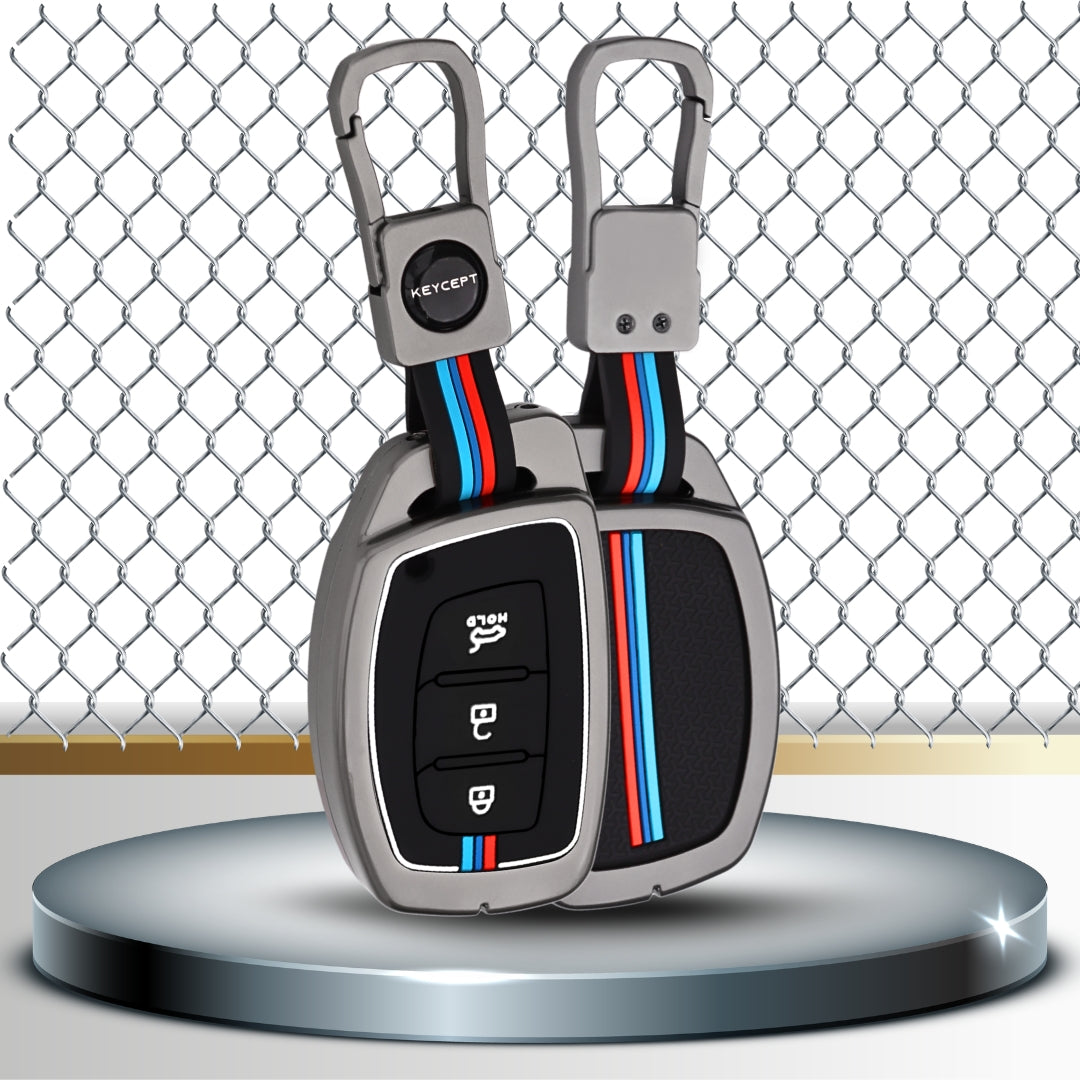 Keycept Metal Alloy Car Key Cover for Hyundai Grand i10 NIOS Asta, Venue, i20, Aura, Creta, Elantra Key Cover with Keychain