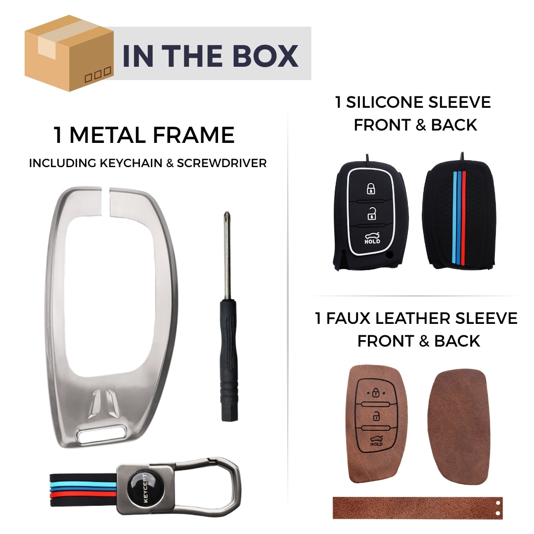 Keycept Metal Alloy Car Key Cover for Hyundai Grand i10 NIOS Asta, Venue, i20, Aura, Creta, Elantra Key Cover with Keychain (Dual Black & Tan)