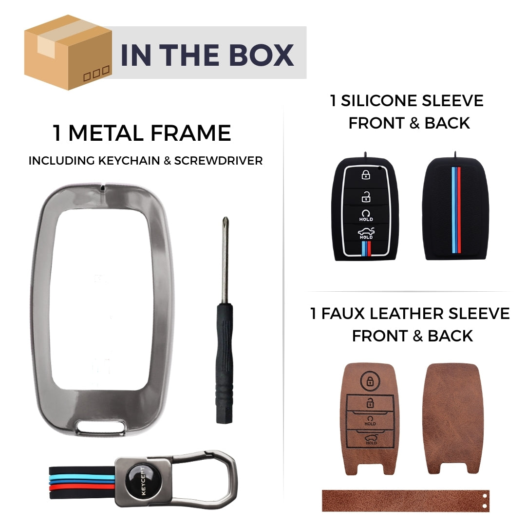 NOTE! Package includes: One key cover only -(Metal Cover, Silicone sleeve, Leather sleeve), a screw driver. Key is shown for reference only and is not for sale. Please make sure to compare your key shape with the key image shown for reference.