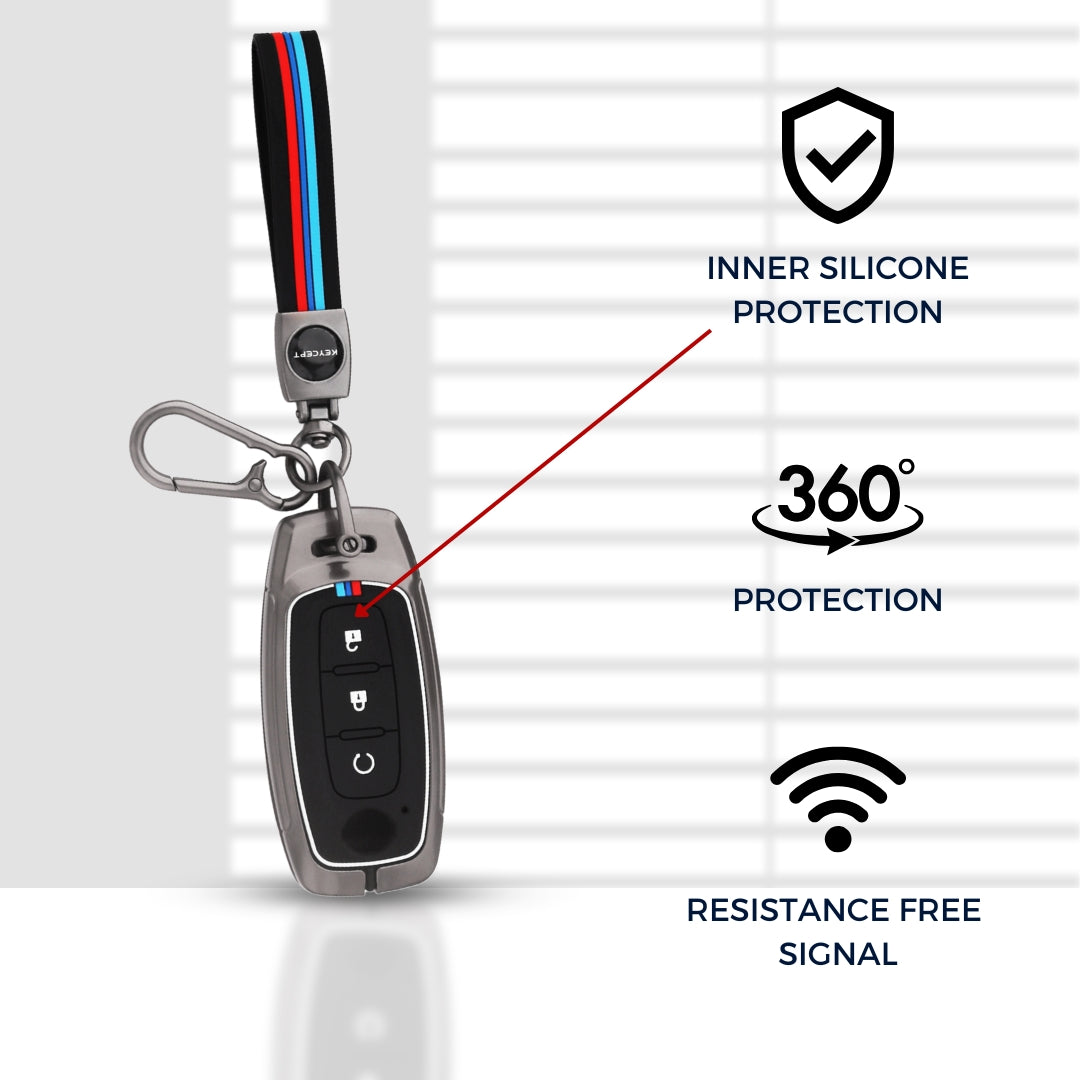 Metal Alloy Key Cover Compatible for Nissan Magnite 3 Button Smart Key with Keychain (Type M2)