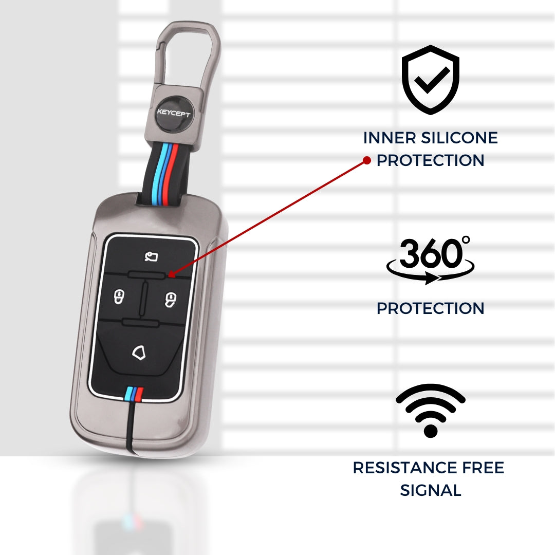 Metal Alloy Key Cover Compatible for Vinfast 4 Button Smart Key with Keychain (Type M1)
