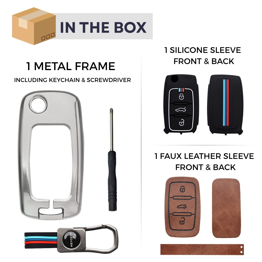 NOTE! Package includes: One key cover only -(Metal Cover, Silicone sleeve, Leather sleeve), a screw driver. Key is shown for reference only and is not for sale. Please make sure to compare your key shape with the key image shown for reference.