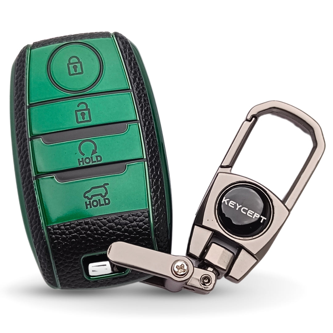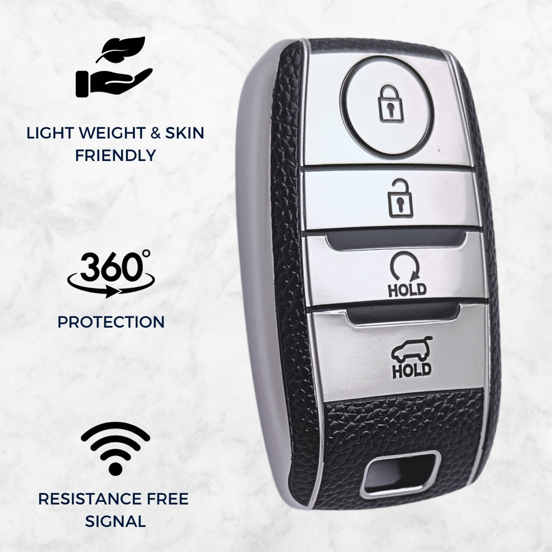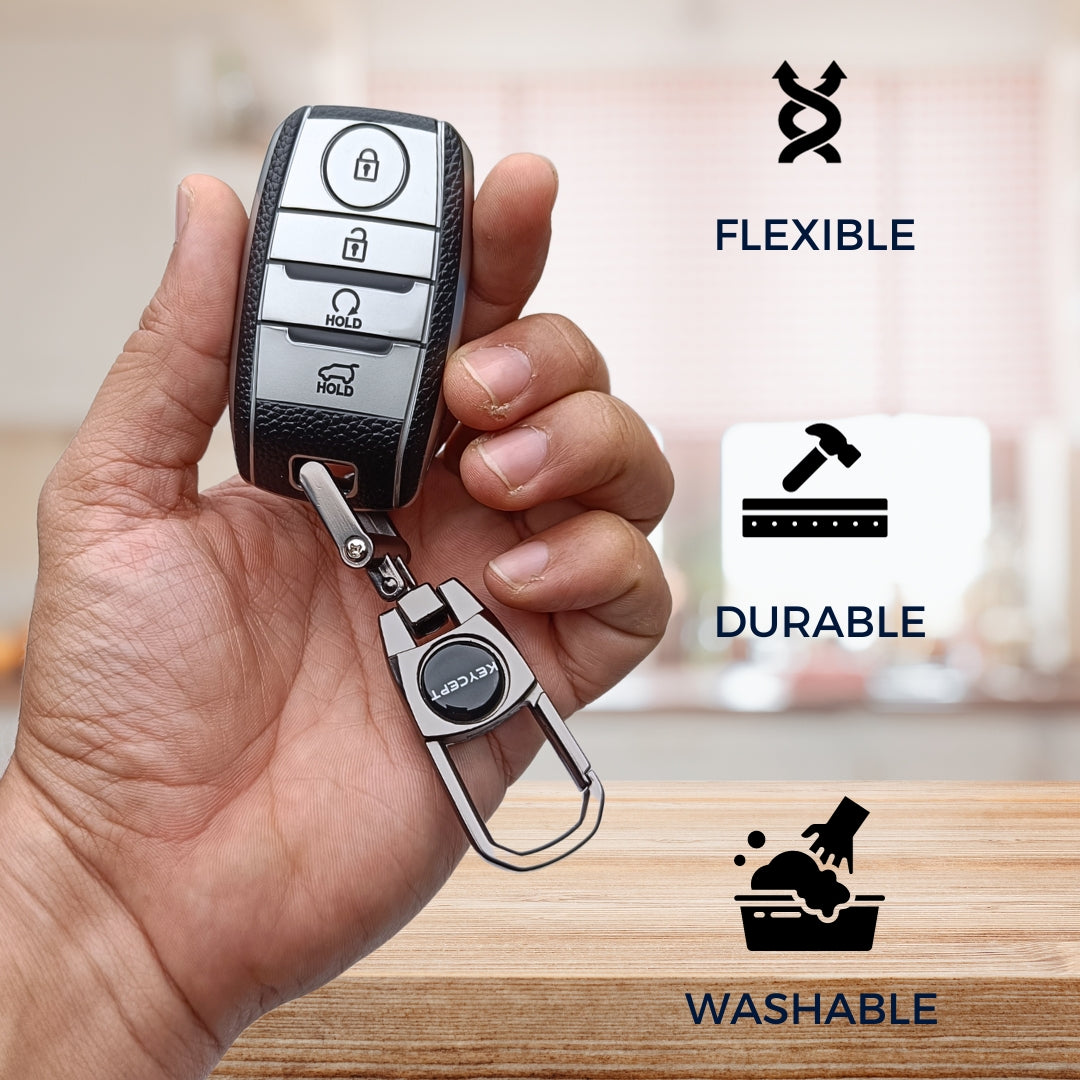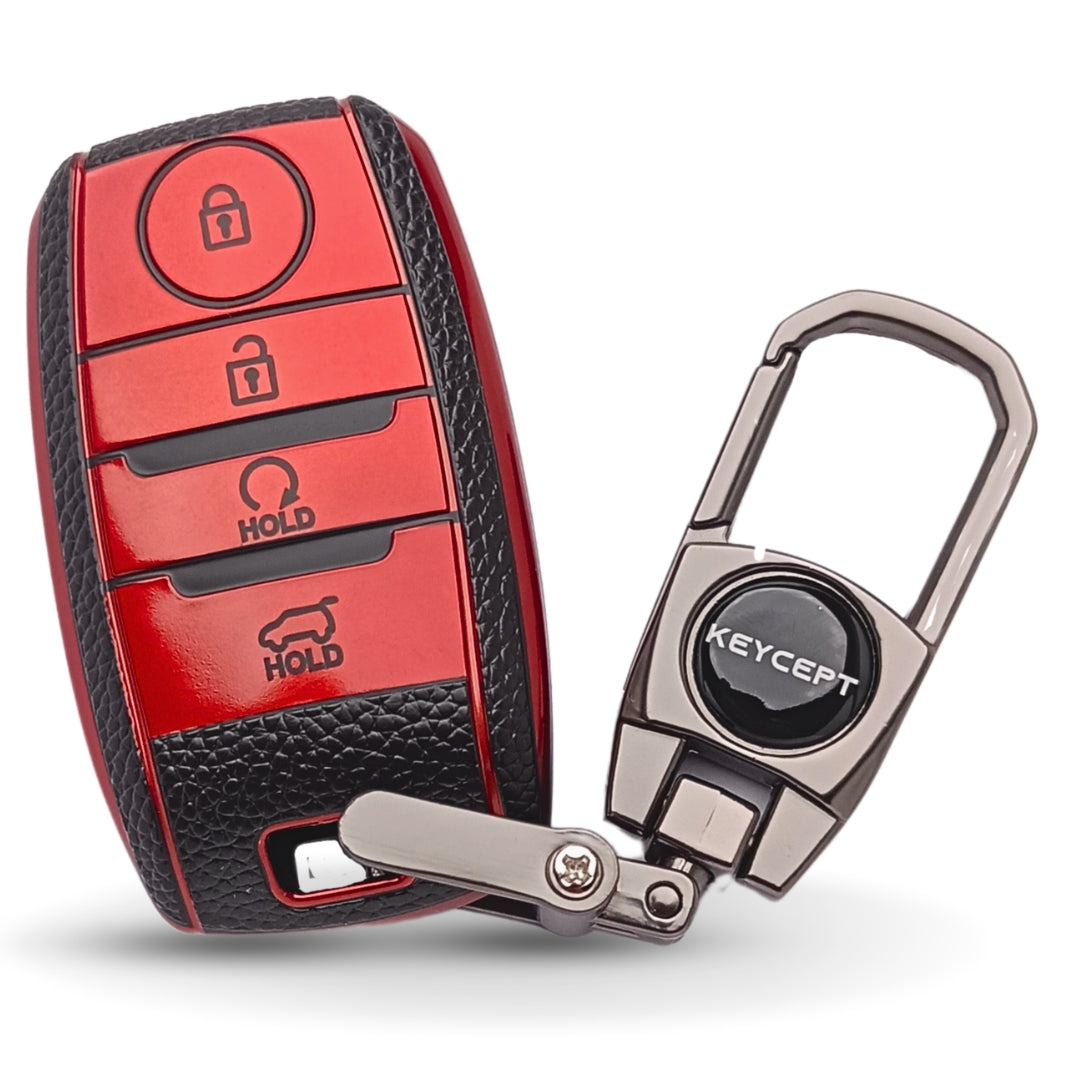 Kia TPU Leather Key Cover with Keychain. (Type 2)